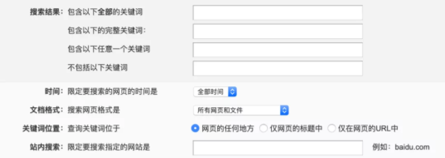 百度的高級檢索,可以限定關(guān)鍵詞,限定要搜索的網(wǎng)頁的時間,限定文檔格式等。