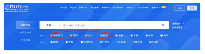 第一步:將搜索框下方默認(rèn)的博碩、會議、報紙這幾個檢索范圍去掉,只保留學(xué)術(shù)期。