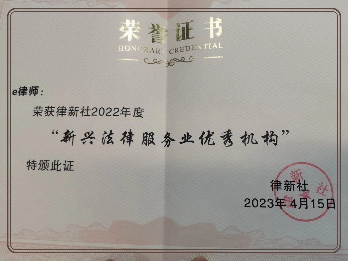 律聯科技(e律師)作為法律服務行業的優秀企業之一,憑借自身核心團隊在法律服務中不斷創新、不斷發展、不斷耕耘。斬獲“新興法律服務業優秀機構”大獎,律聯科技技術總監代表e律師上臺接受這一殊榮。